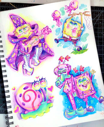 Mixed Media: Alcohol based markers, fine liner pens, posca pens, and gel pens.
